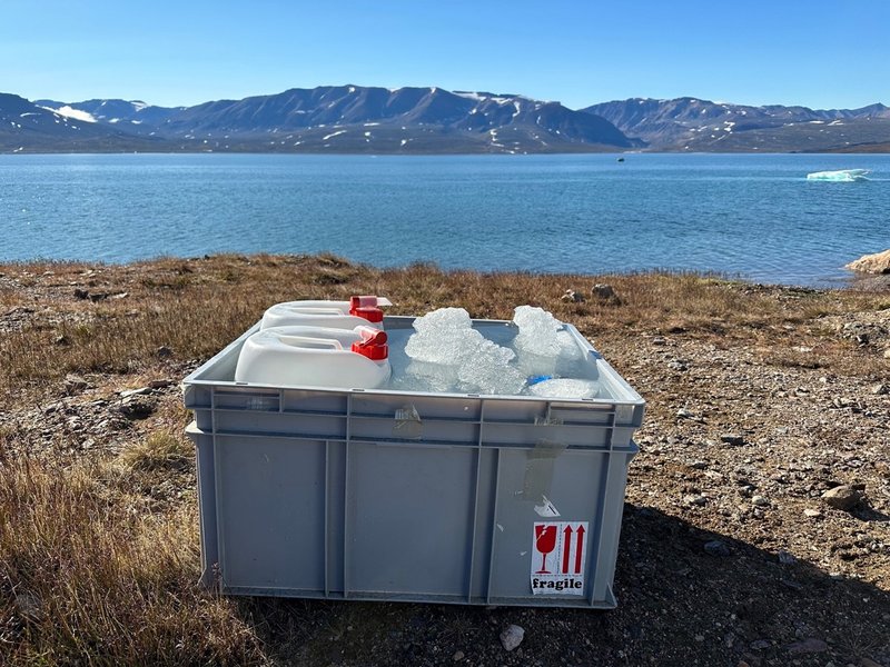My plan for this field season – besides doing a lot of sampling within the fjord – was to conduct a field experiment measuring the different effects that freshwater has on the partial pressure of CO2 when it is mixed with seawater. I prepared a setup back in Aarhus where I used our Contros HydroC (an instrument that measures pCO2) and its built-in pump to create a closed system that monitors the real-time changes occurring in a carboy filled with water.